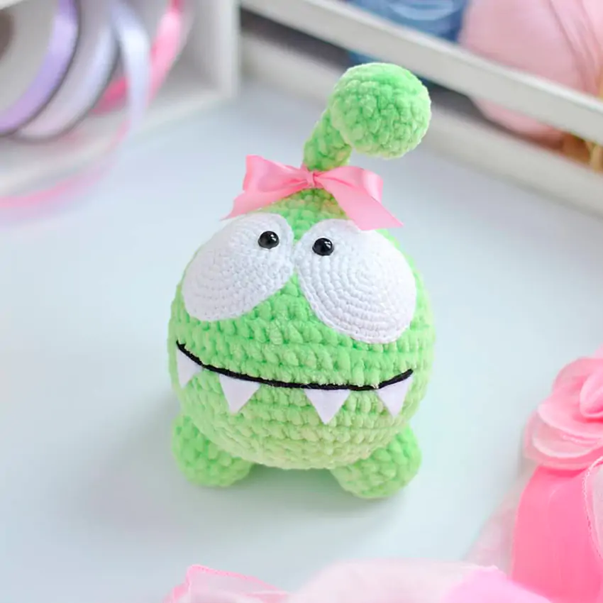 Бесплатный мастер-класс по вязанию амигуруми "Ам-ням". Это очень простое описание, с помощью которого вы легко свяжете своим детям забавную игрушку. Автор делится, что из одного мотка пряжи получилось целых две игрушки. На фото обе связаны из плюшевой пряжи Himalaya Dolphin Baby цвета 80350, но с использованием крючков №3 и №4. Из-за этого размеры игрушек отличаются: при вязании крючком №3 высота малыша без хвостика составляет 12 см, а крючком №4 — 14 см. Автор желает вам приятного вязания и с радостью ждёт ваших работ.