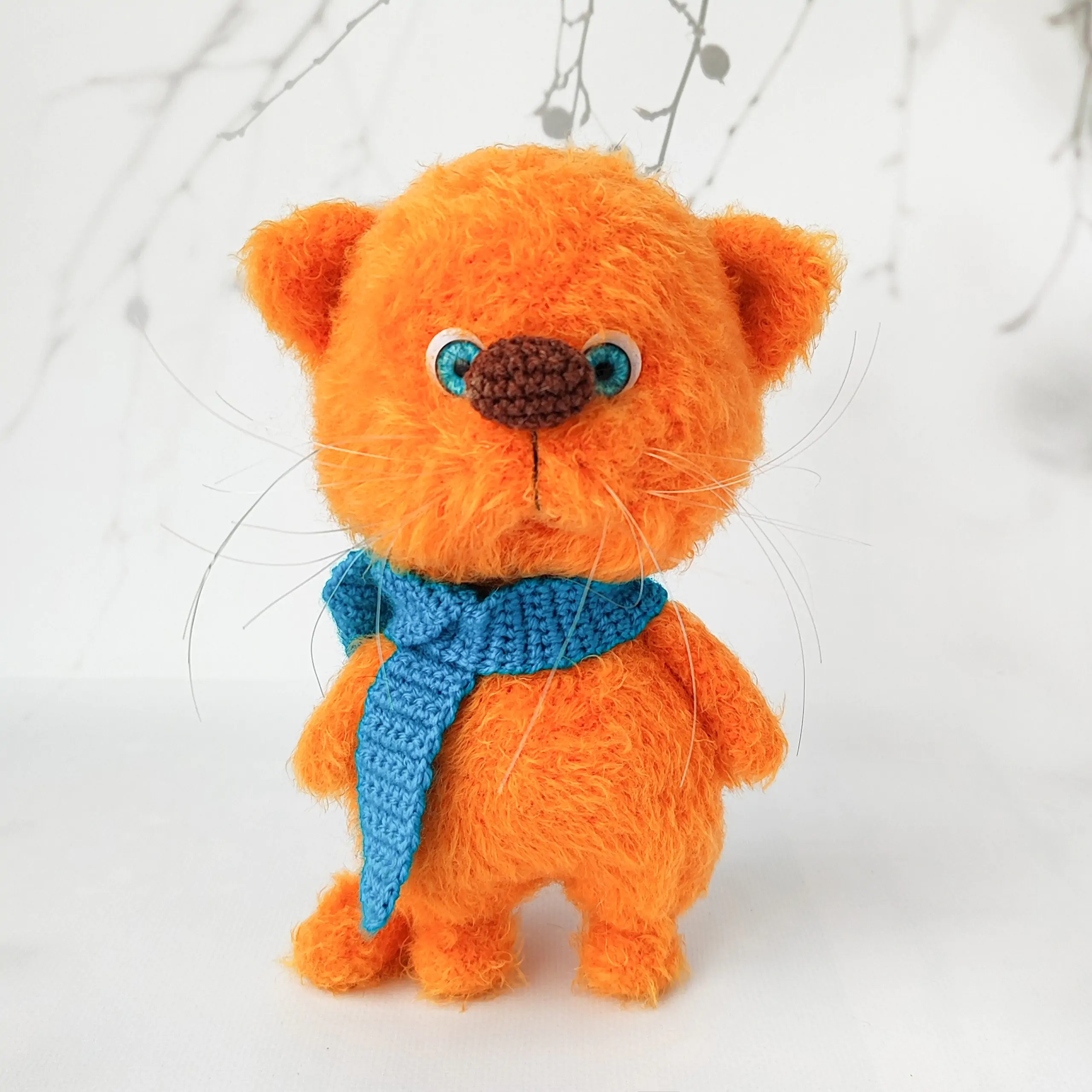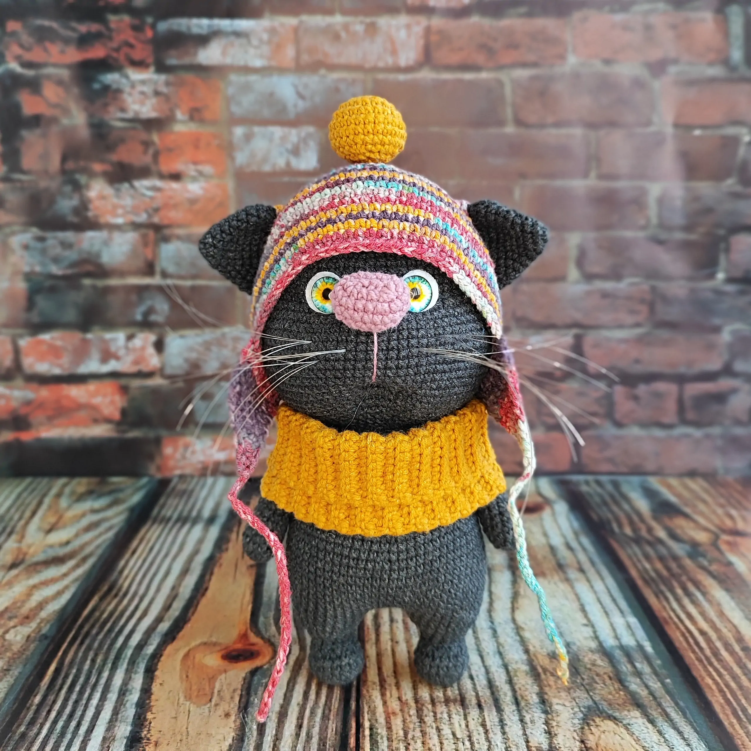 Данное описание включает в себя полное описание процесса вязания игрушки, шапочки, снуда, промежуточные фото деталей. Игрушка вяжется снизу вверх, «полукрестиками», по спирали, (если не указано другое). Шапочка и снуд вяжутся крючком, «галочками». Верхние лапы, хвост и носик ввязываются, голова и уши пришиваются. При использовании указанных материалов, высота готовой игрушки около 20 см.