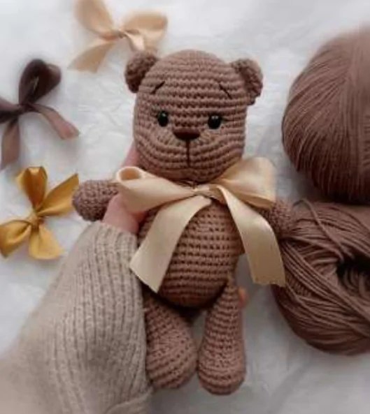 Милый медвежонок вязаный крючком схемы и описание от автора Дарьи Титовой. Для того чтобы связать такого медвежонка вам понадобится пряжа YarnArt Jeans (цвет 71), крючок 2 мм а так же глазки на безопасном креплении 8-9 мм. Автор достаточно подробно описал вязание игрушки.